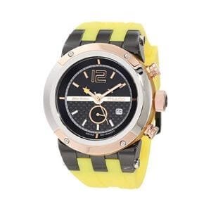 La caja es de 47 milímetros, es bastante grande y llamativo, lo he visto en las muñecas de mujeres y no pasa desapercibido. La correa es en silicona muy duradera, trae taquímetro y cuenta con temporizador y cronómetro como características especiales.